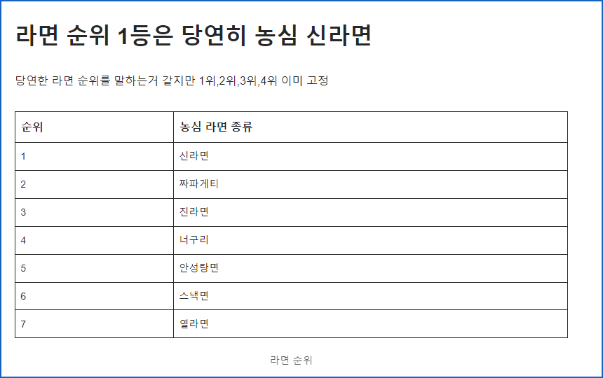 아래 라면박사에서 가져온 정보이고 기준은 봉지라면 판매량 기준